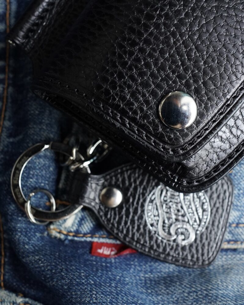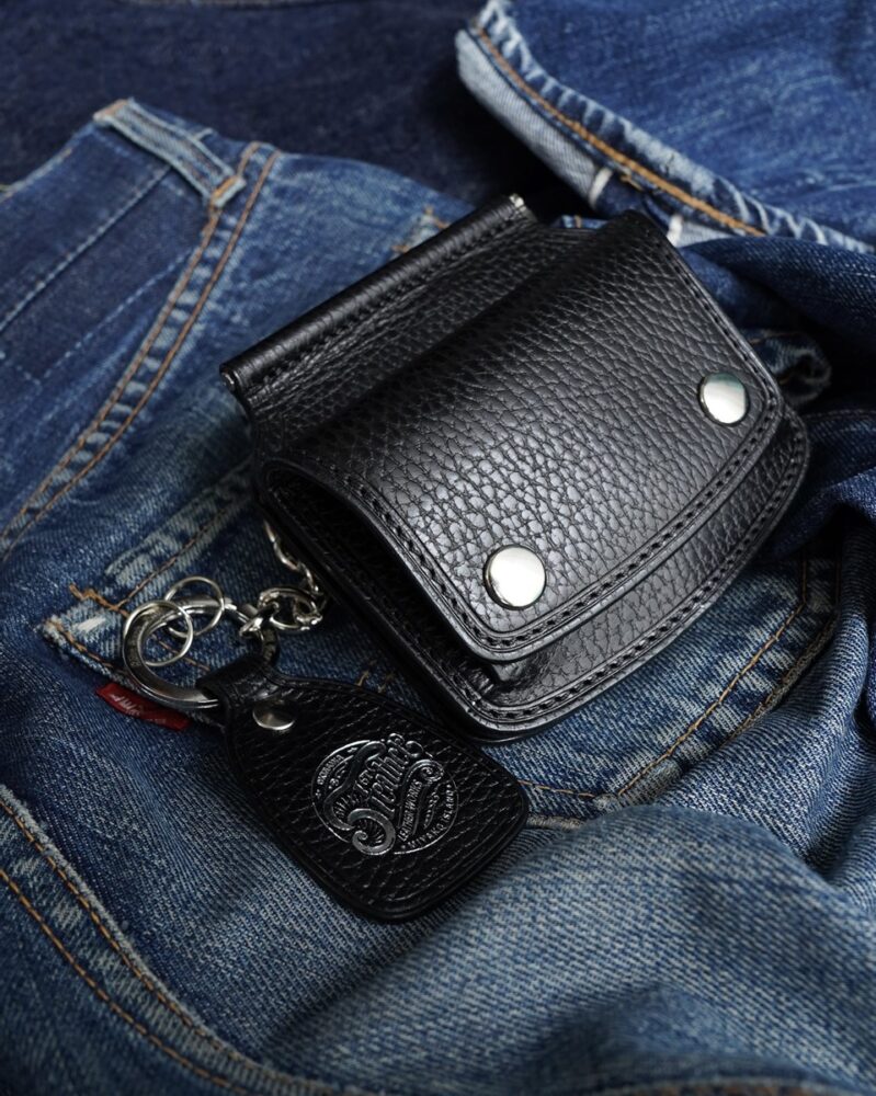 大量生産に頼らず、オーダーを軸に一点ずつ仕立てられるレザーギア。中でも代表的ともいえるマネークリップは、無骨でクラシックな佇まいが際立つ。装飾を削ぎ落としたシンプルな構造ながら、使い込むほどに存在感を増し、バイカースタイルに自然と馴染む。走りの中でこそ、その真価を実感できるはずだ。