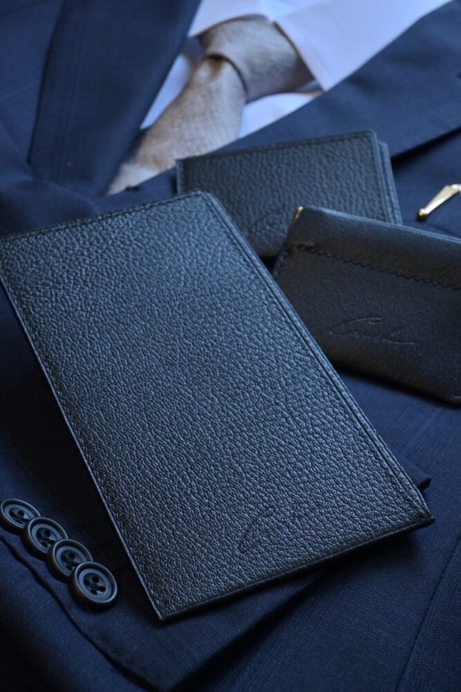 勝負の日のスーツ姿を完璧に仕上げる「スーツ専用コレクション」。札入れカードスリーブ・小銭入れの3点からなる無駄を削ぎ落とした機能美。フランス産山羊革を総手縫いの無双仕立てで仕上げたラグジュアリー な風格。この逸品で大人の噛みを。