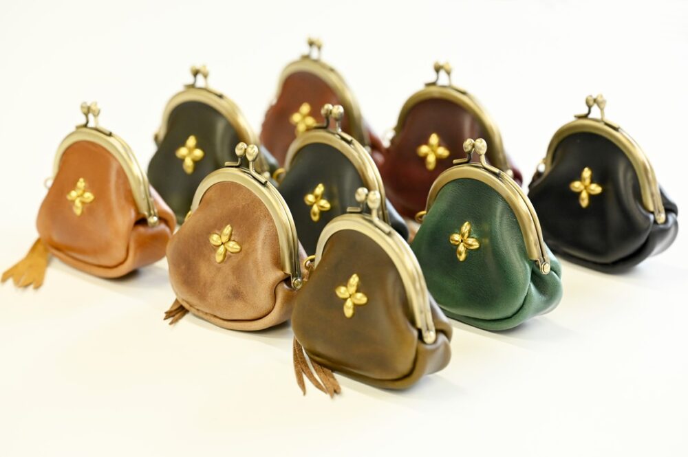 カラーカスタムも可能ながま口小物入れなども展開。首から下げたり、軽装になる春夏にコーディネートのアクセントとして取り入れたい逸品だ。