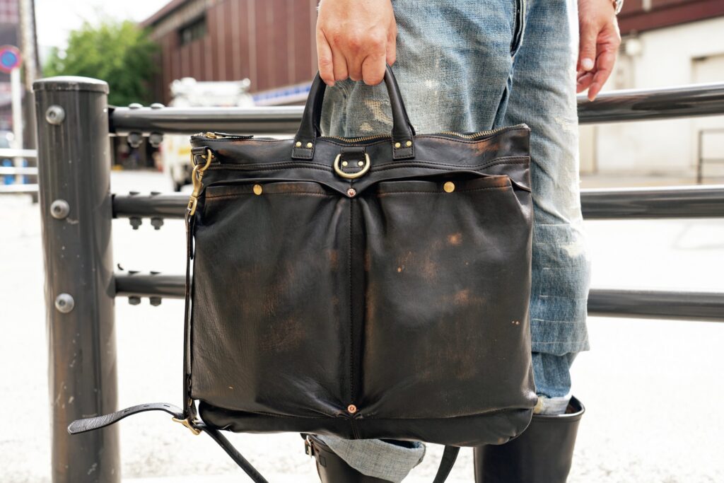 革ジャンやブーツを中心に盛り上がりを見せている“茶芯”について、レザー初心者のみなみ 188がモヒカン小川に教えを乞うこの連載。今回はモヒカン小川が実際に使用しているヘルメットバッグを見せてもらった。 茶芯ヘルメットバッグのエイジングはいかに? みなみ 188(以下、みなみ) 今日はバズ...続きを読む