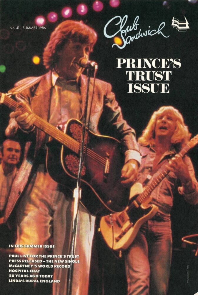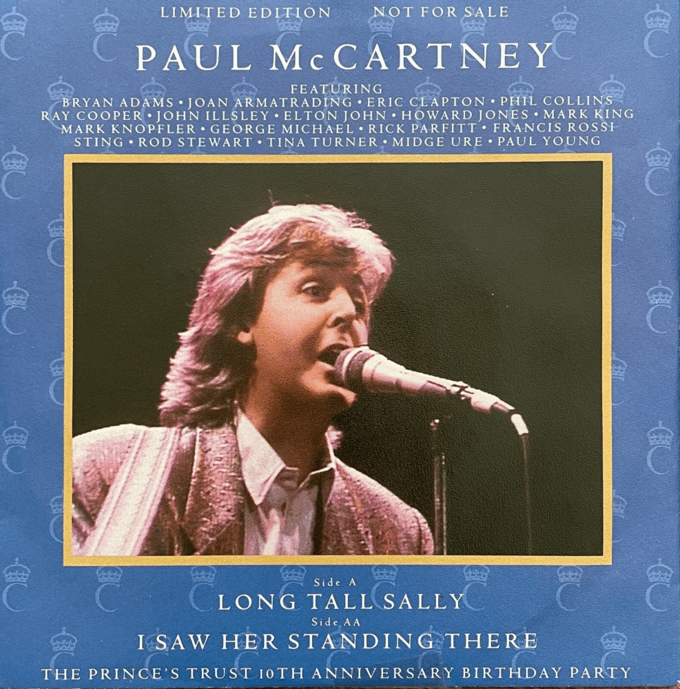 86年6月、その『プリンストラスト』にポールが出演した。この年10周年を迎えたとのことで、元ビートルズの大物に白羽の矢が立ったのだ。ポールはトリに登場して、「アイ・ソウ・ハー・スタンディグ・ゼア」「ロング・トール・サリー」「ゲット・バック」を歌唱。ビートルズ時代のロックンロールという選曲もにくいし、エリック・クラプトンやエルトン・ジョン、フィル・コリンズなどが顔をそろえたオールスター的なバックバンドも特別感を出していて見応えがあった。ポールが公の場においてバンドセットで歌うのは久しぶりのこと。PV撮影でそのようなシチュエーションは何度かあったものの、公のライブで歌うのは79年12月の「カンボジア難民救済コンサート」以来であった。ベースやピアノでなく、アコギを弾くポールというのも新鮮で、60年代のような高音でロックンロールをシャウトする姿にしびれた。