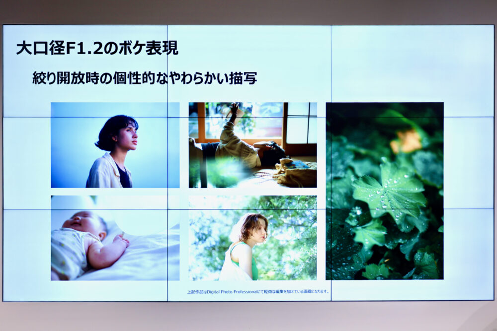 同時に、RF45mm F1.2 STMというレンズも発表された。とても明るいのに安い。性能を追求したレンズはもう充実しているので、ちょっと趣味っぽいレンズを……ということのようだ。F1.2で6万6000円というのは破格値だ。