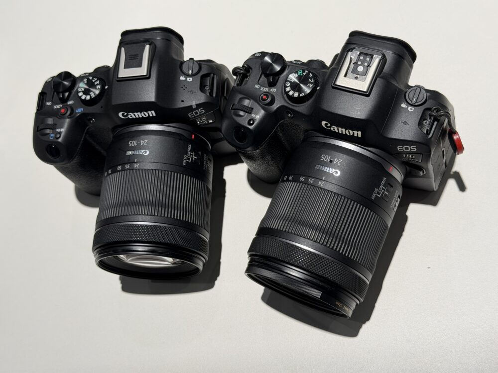 ちなみに、左がEOS R6 Mark IIIで、右が筆者のEOS R6 Mark II。見た目はほとんど変わらない。重さも同じぐらい。EOSのエンブレムの上にタリーランプが付いたのが識別点か。