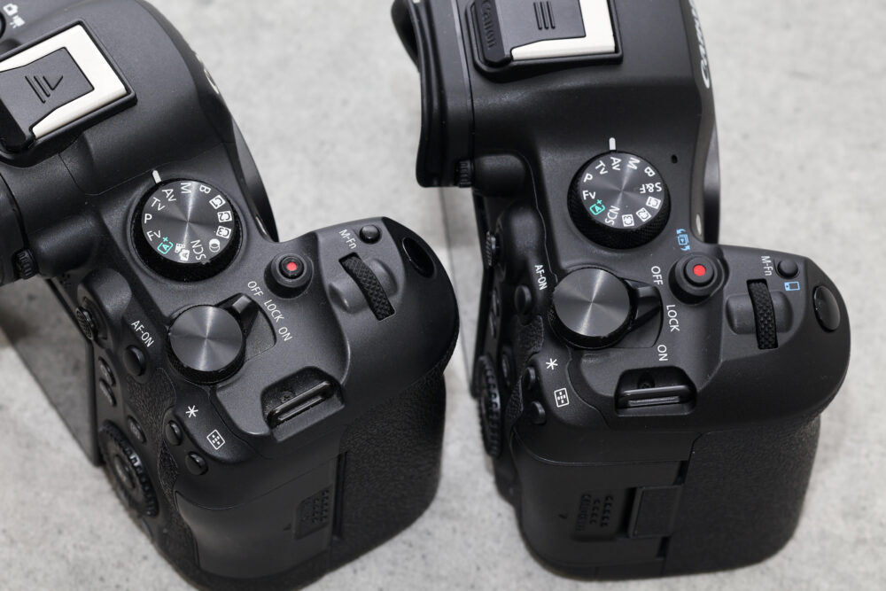 一番特徴的なのは、以前は別パーツだった軍艦部が一体化されていること。細かく見ると、動画撮影ボタン周りの形状が違ったり、ダイヤル部の周囲の盛り上がり方が違ったりと、ディテールも異なる。