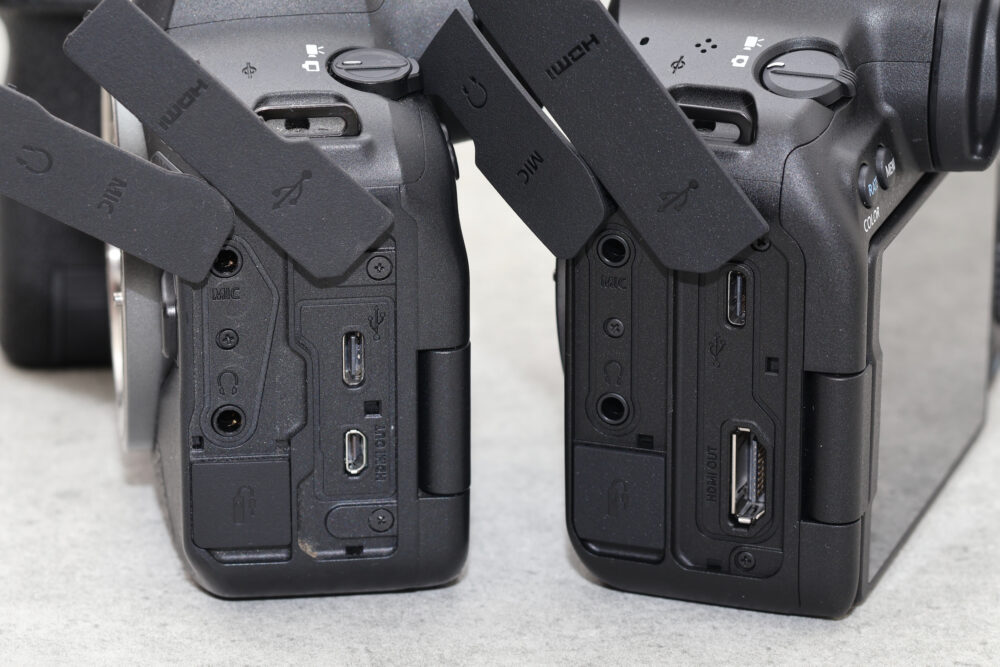 筆者はあまり使わないが、HDMI端子が変わったのも、動画ユーザーにとっては大きなポイントなのだそうだ。Mark IIでは、マイクロHDMI(タイプDコネクター)だったのが、通常のHDMI(タイプAコネクター)になっている。内部的にタイプAが入るスペースを確保するのは大変だったことと思うが、動画ユーザーが撮影する際に長くて重いHDMIケーブルを使うと、タイプDでは抜けやすいらしい。これも、ユーザーの意見を取り入れた実用本位の改善だといえるだろう。
