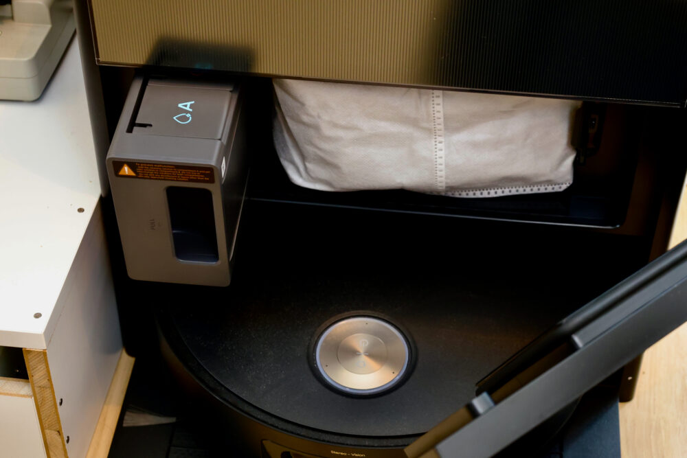 下段のハッチを開くと、ゴミ収集用のフィルターパックと、クリーニングソリューション、ペット消臭ソリューションを入れるケースがある。