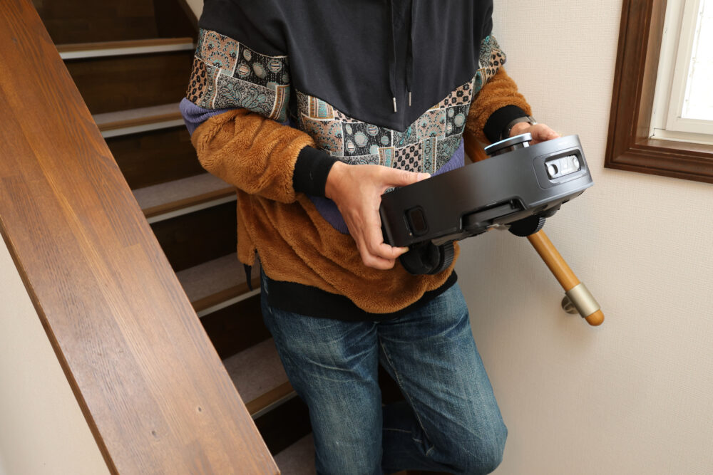 某所で階段を登るロボット掃除機も発表されていたが、我が家のような急な階段を無理に登って転落してバラバラになってもらったりしては困る。むしろ、手で持って上がった方が安全で分かりやすくていい。