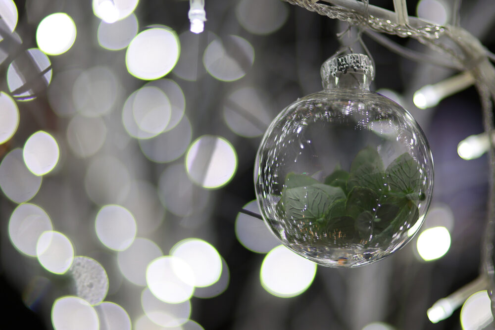 街角のクリスマスイルミネーションを撮って、光の玉ボケを楽しんだ。ガラス玉の中にミントの葉が入ってるのだが、そこにピタッとピントが来るのもRFシステムの便利さ。手作業で合わせるのは大変だろう。