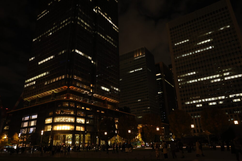 解像度と、暗所性能を試すために丸の内で夜景を撮ってみた。