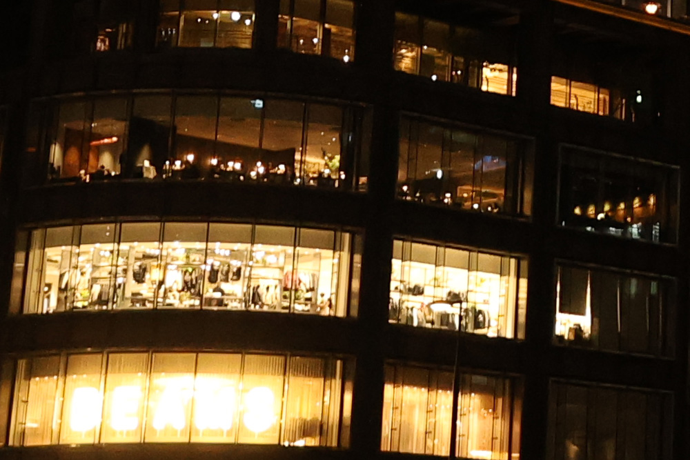 ここまで拡大すると、多少差が出る。写真に写ってる下から2番目のフロアの服のディテールが細かく見えるし、その上のフロアの天井もIIIの方がきれいに見える。しかし、差はこのぐらい。解像度対決では、筆者の使い方では、決定的な差ではないように思う。