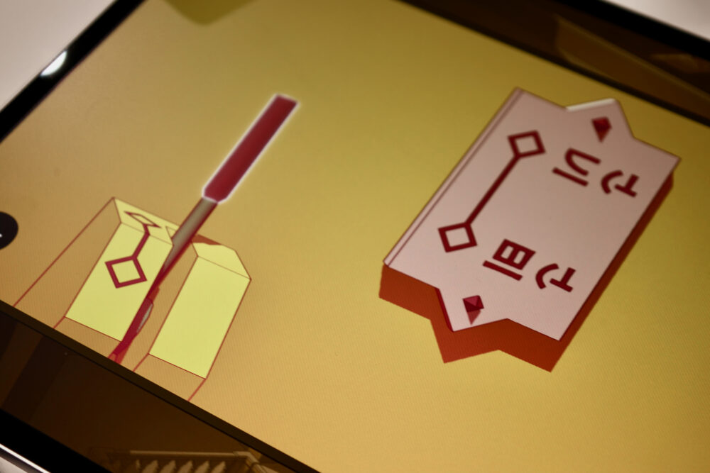 ちょっとエキゾチックなグラフィックのゲームも多かった。特に面白そうだったのが、こちらもカルチャーインパクトで選ばれた『Chants of Sennaar』。