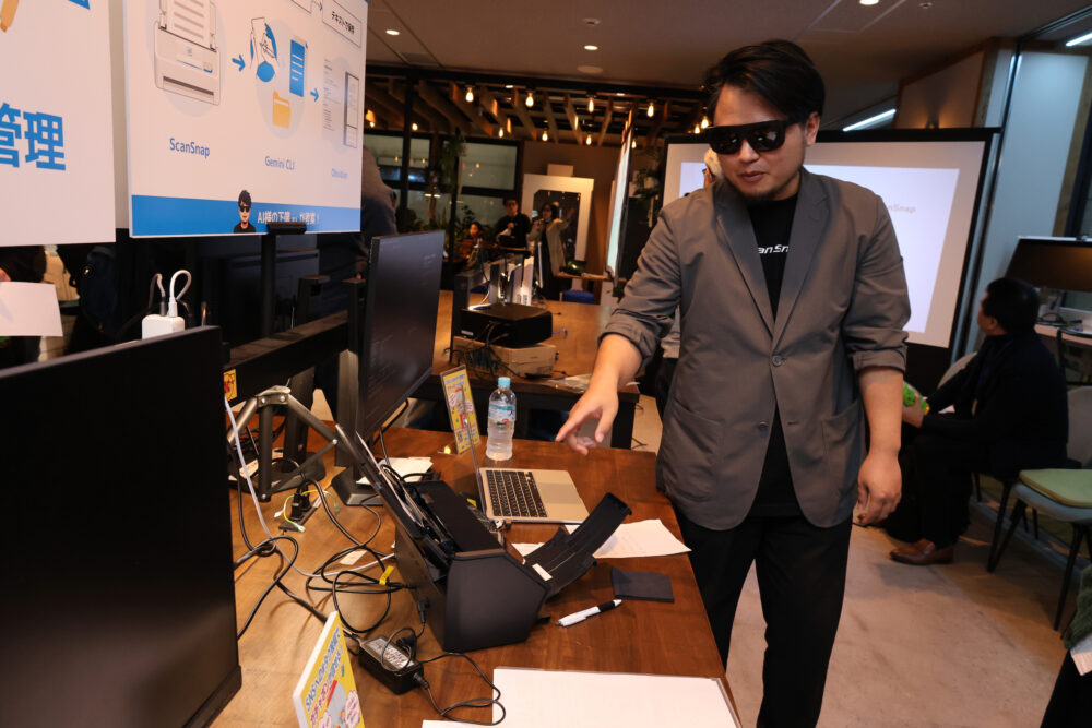 『こーすけ先生』ブースでは、レシートや領収書をScanSnapに“放り込むだけ”で、AIが自動で表に変換してくれるデモが行われていた。