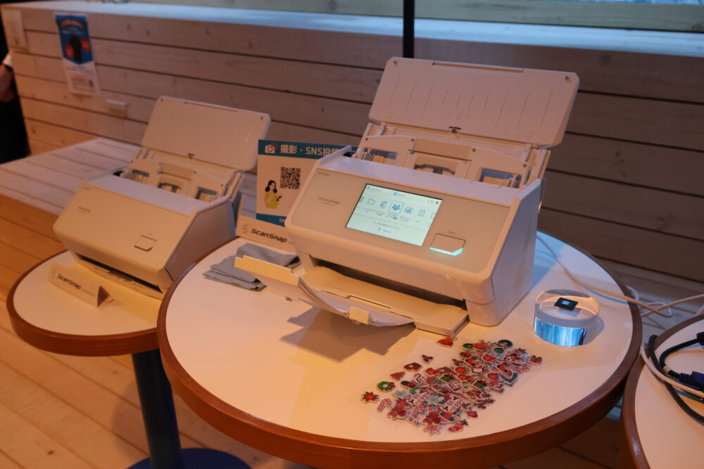 PFUのブースでは、最新モデルである『ScanSnap iX2500』『iX2400』『iX110』の展示もあり、実際に触って比較できるようになっていた。タッチパネルの操作性、読み取りスピード、静音性などの進化が体験でき、iX1500や1600など旧モデルを持ってる人にとっては非常に興味深い展示だったことだろう。