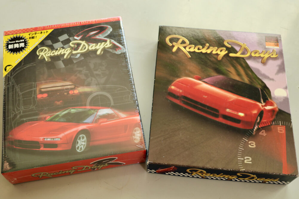 取材時ご持参いただいたパッケージの裏を見ると、対応機種にPowerPCとあるのが懐かしい。上段がRacing Daysで、下段が後継のRacing Days Rだが、Rの方はPowerBook 5300、1400、3400でも動くらしい。互換機の名前があるのも時代を感じさせる。
