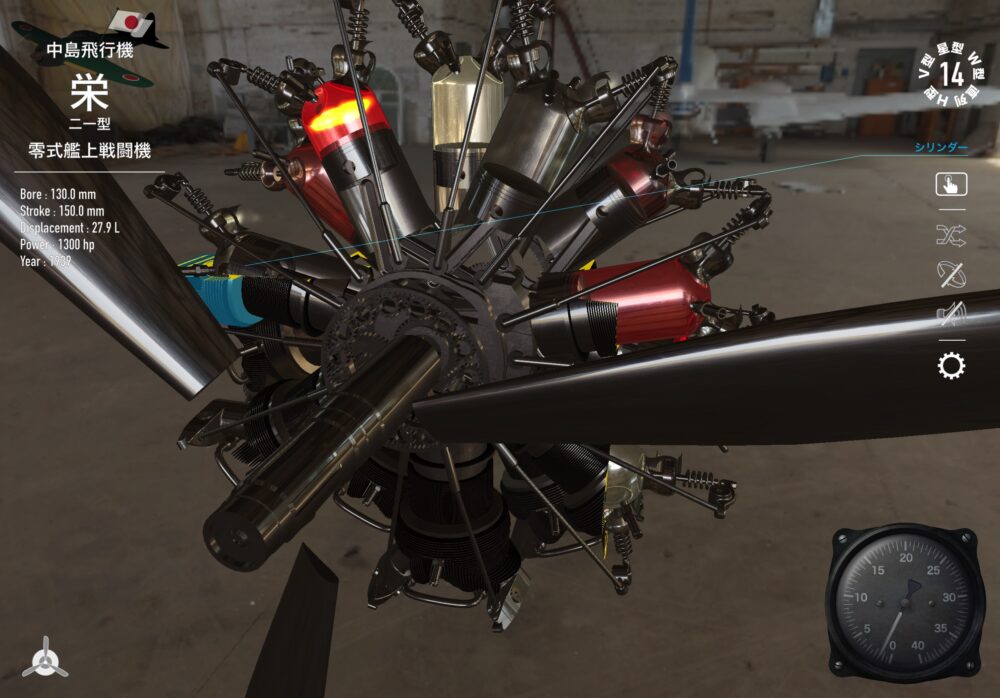 栄二一型や、マーリンエンジンを再現した飛行機エンジンアプリTrans4motor Sもある