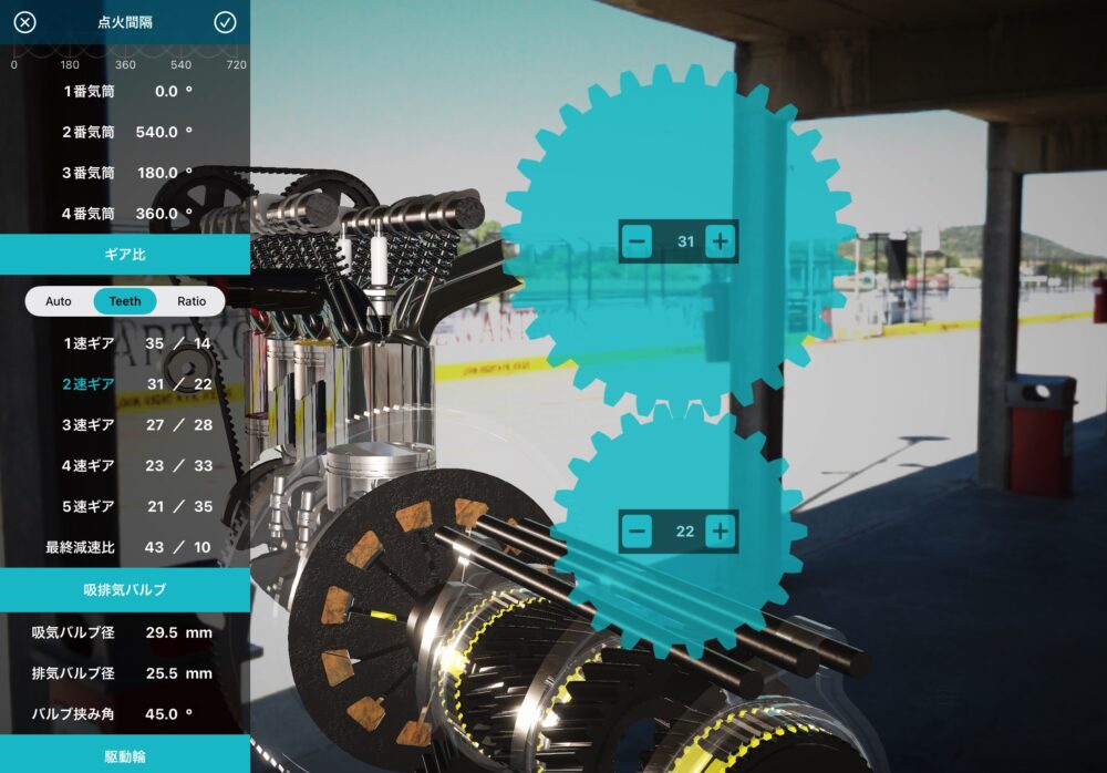ギア比にいたっては、当然のことながらワークスマシンのギア比など絶対に秘密なはずだが、バイク雑誌に写っていた分解写真のギアパーツの写真を拡大し、歯数を数えて反映したという。このアプリをホンダのエンジニアの方が見たら、驚かれるのではないだろうか?