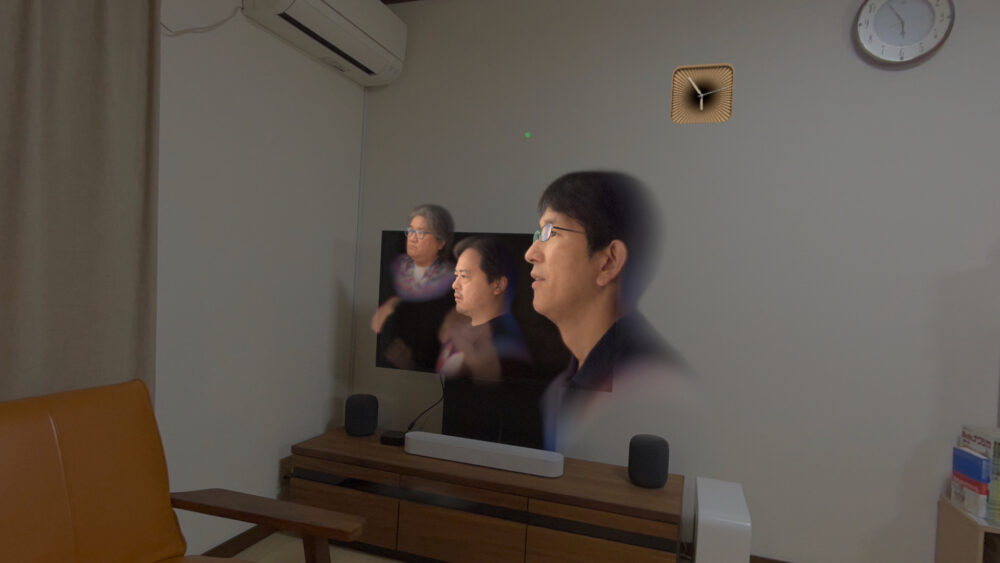 初期のポリゴンを使ってのペルソナと違って、ガウシアン・スプラッティングというガウス分布の要素を集めたペルソナは、非常に自然で、声もちゃんとその方角から聞こえて来るのには驚く。