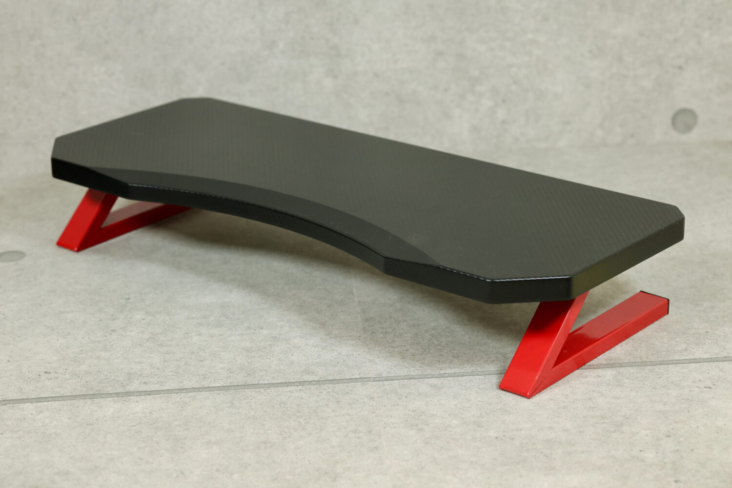 ゲーミングチェアと組み合わせて使う用らしく、脚は赤なのだが、これはちょっと周りに合わないのでマットブラックに塗り直そうと思っている。