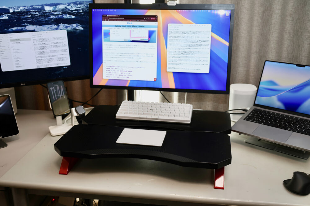 もっとも、昇降デスクなどで机全体を上げた方が良いにかもしれないが。