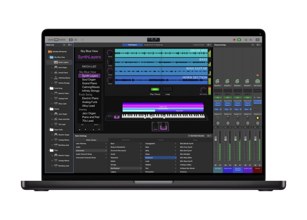 Logic Proもプロの音楽製作用アプリ。大量のトラックを含む音源を編集できる。このアプリにはAdobeに対抗馬がなく、『映像編集→音楽も自作』とか『音楽製作→MVも作りたい』という人にはApple Creator Studioが向いているということになる。