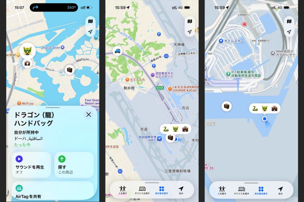 筆者は、普段はもちろん海外旅行の時にも、あらゆるバッグやスーツケース、貴重品ポーチにAirTagを忍ばせている。自家用車にも積んでいる。だから、旅行中、車の位置も、預け入れたスーツケースの位置も把握できる。この安心感は大きい。