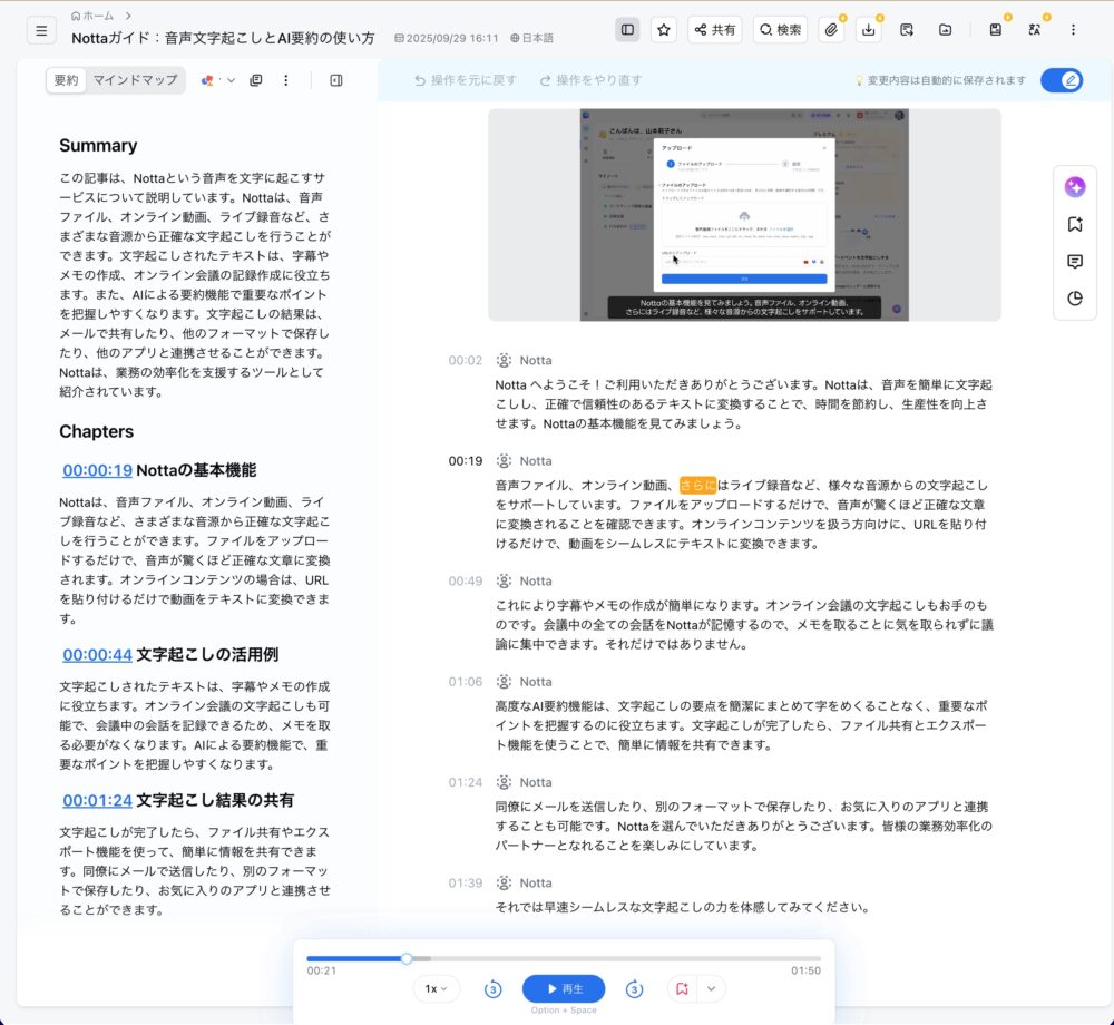 Nottaは日本企業である(創業社長は中国にルーツを持つ)。なので、特に日本語の文字起こしのクオリティが高いと評価されている。実際にそうだと思う。
