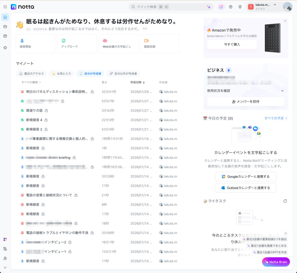 筆者の使い方は、一般の会議の議事録用途とはまた少し違うかもしれないが、もちろん議事録に使っても便利だろう。ちょっとした打ち合わせも文字起しがあれば、ネクストアクションなどを忘れない。気になる方はとりあえず、無料版(120分/月、ただし1回3分)だけでも使ってみてはいかがだろうか?