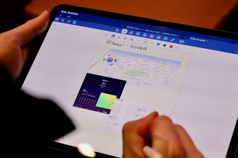 ワークショップは、まずApple StoreスタッフによるiPadの基本操作の説明から始まり、その後、あおいさんがGoodnotesの具体的な活用法を解説する流れで進行した。操作に不慣れな参加者にも配慮された構成り、段階的に理解を深められるようになっていた。