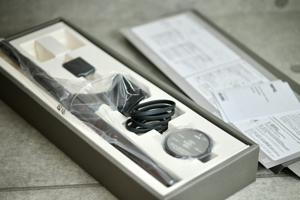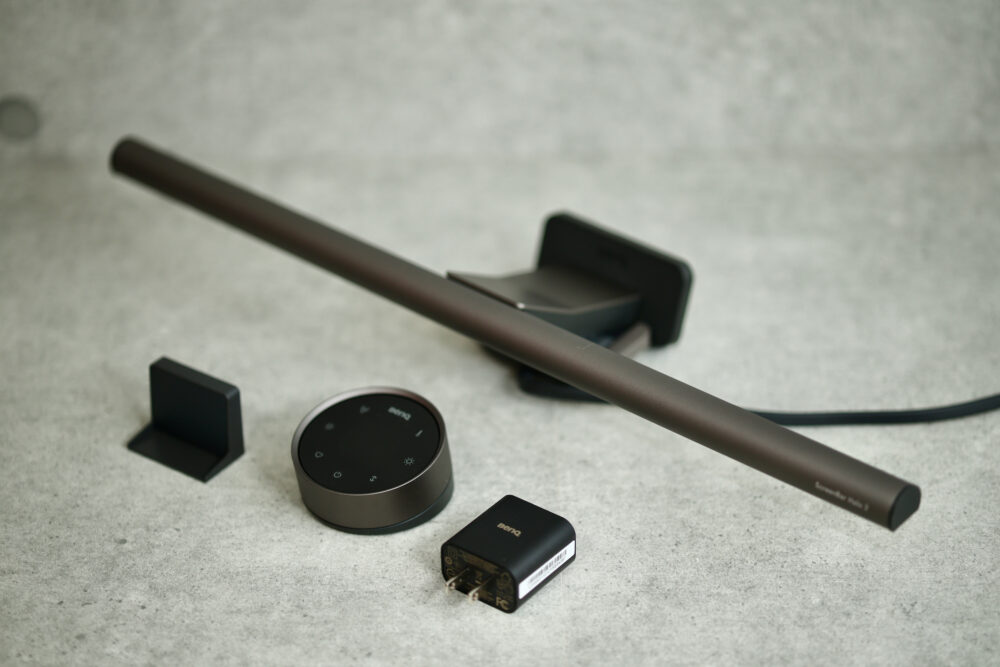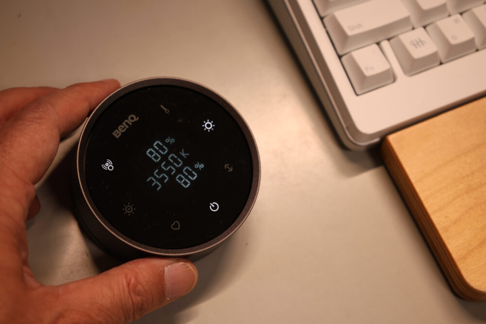背面が暗すぎると画面とのコントラストで目が疲れてしまうが、背面を照らすことでその負担を大幅に軽減できるのだ。操作性も考慮されており、USB Type-C充電に対応したワイヤレスリモコンによって、照明の明るさや色温度を直感的に調整することが可能だ。一回の充電で約3ヶ月利用できる。ワイヤレスリモコンのリングはスムーズにクルクルと回すことができて非常に快適。ついつい触りたくなるコントローラだ。