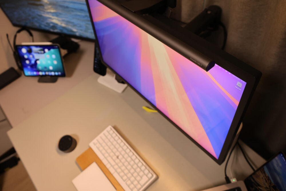 特に最上位モデルである『ScreenBar Halo 2』は、手元を照らすフロントライトに加えてディスプレイの背面側も照らすデュアル照明を採用している。