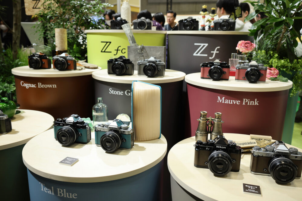 例えばニコンのブースには、デジカメでありながらアナログカメラのようなテイストのZfシリーズが多数展示されていた。