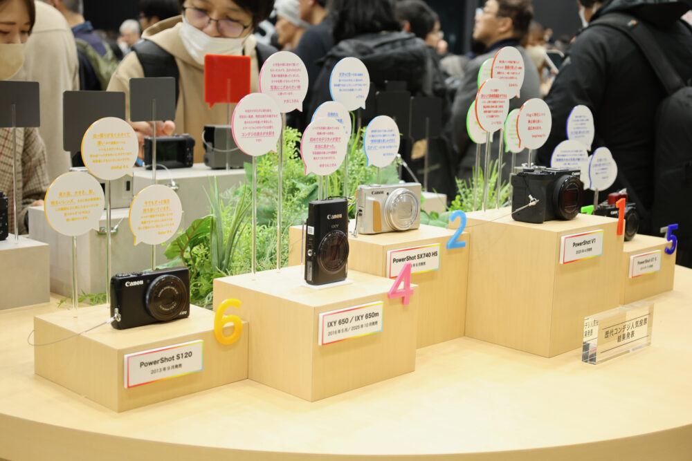 キヤノンでは歴代コンデジの人気投票を行っており、この30年間に使われてきた懐かしい機種が並んでいた。今、若者の間でレトロコンデジが人気を集めているのも、こうしたアナログ的な価値が見直されている流れのひとつなのだろう。