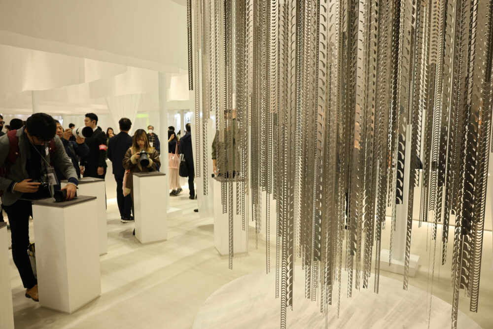 シグマのブースには、同社のシャープな描写を楽しむためのアート作品が展示されていた。一見すると繊細なアートだが、よく観察するとレンズの『絞り羽根』を抜き取った後のスチールやステンレスの薄板を再利用したものであることが分かる。フォーカスを合わせる楽しさを体験できるだけでなく、廃品利用でありながらアートとして成立しており、カメラ好きにとっては部品の廃材に対する愛も感じる展示だ。