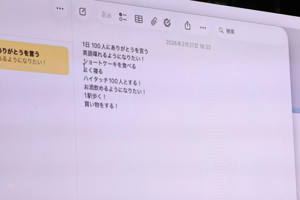 ワークショップは、まずiPhoneの『メモ』アプリを用いたやりたいことの書き出しからスタートした。キーボード入力ではなく、思いついたことを音声入力で次々と記録していくスタイルは、iPhoneを日常的に使いこなす彼女らしい提案であった。