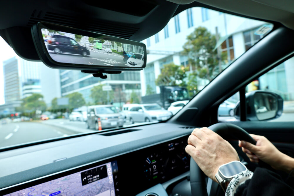 一方で、気になる点もいくつかあった。デジタルルームミラーは、老眼の影響で近くの画面にピントを合わせるのが難しく、遠くの対象を見る光学ミラーの方が扱いやすいと感じる場面があった。