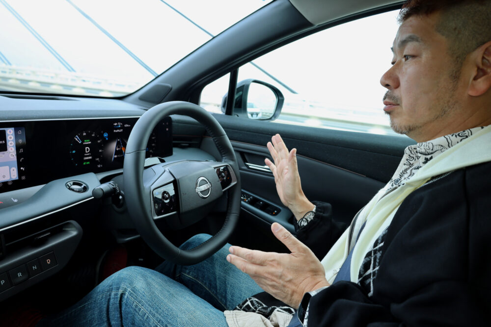 EVは踏んだ瞬間にパワーが立ち上がる特性を持つが、この車は出だしをあえて緩やかに設定しているように思う。