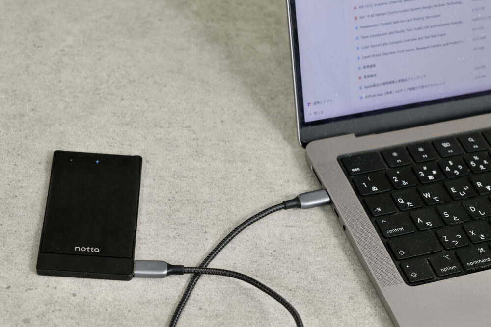 さらに、使ってみて気付いたが、USB-CケーブルでMacと接続すると、高速で録音データを転送できる。長い録音をiPhoneにBluetoothで転送するのには時間がかかり、Wi-Fi接続は時折失敗するので、これは助かる。Wi-Fi接続よりもちろん直接接続の方が早い。