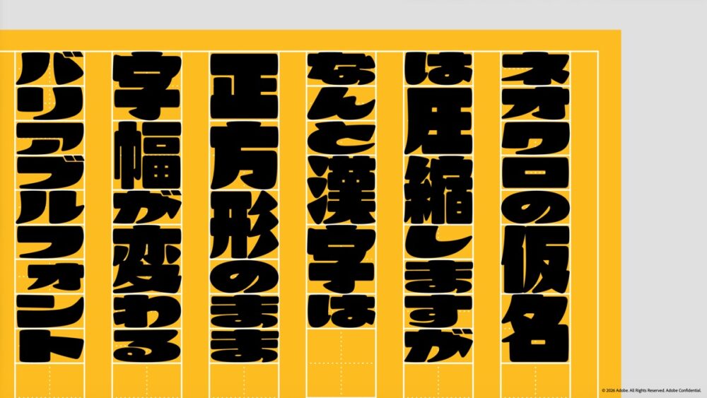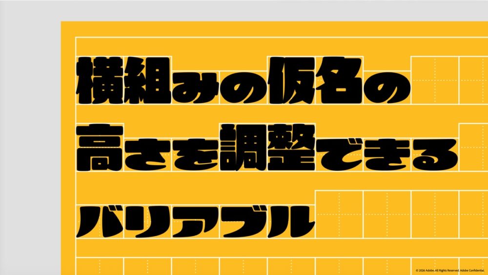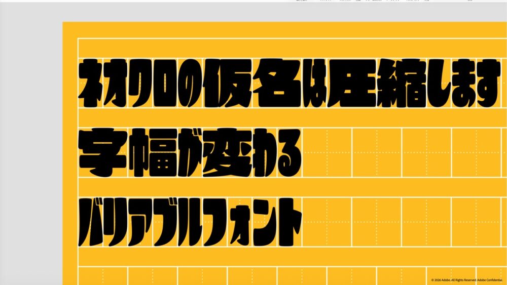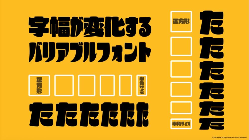 そして、アドビならではの技術的チャレンジは、ポイント数だけでなく、縦横の比率を自由に設定できるバリアブルフォントとしたことにある。