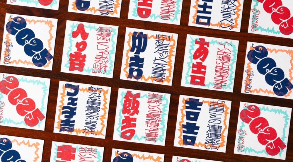 こちらは吉田さんが作ったおみくじ。さまざまな『吉』が出るようになっていて、それぞれ独自の書体で描かれているのが面白い。