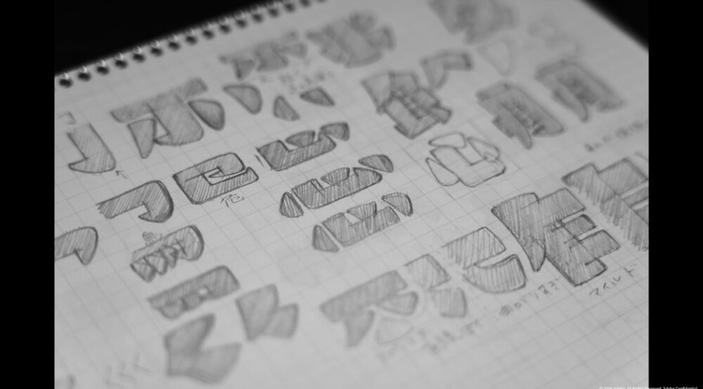 フォントデザイナーは、ノートにいろいろなフォントを描いてみたり、街にフォントを拾いに行ったりするそうだ。