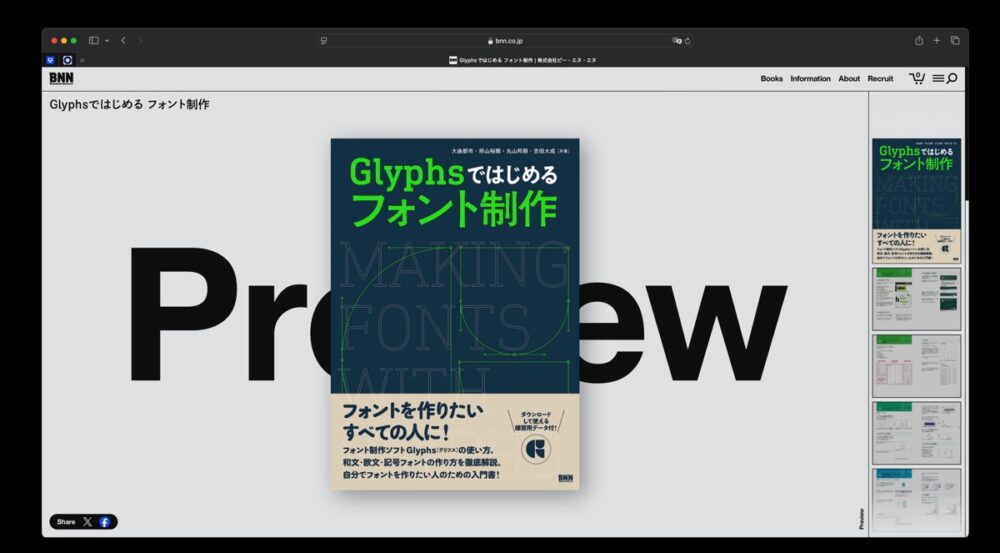 武蔵野美術大学に入り、その後新卒で2018年にアドビに入社。アドビのような会社は常時新卒を採っているわけではないから、これはとてもレアケースだ。その後アドビでフォントデザイナーとして勤務しているが、一方、個人的に『Glyphsではじめるフォント制作』(BNN)、『パスクール—パスで描く文字デザインの学校—』(PIE International)などの書籍を上梓したり、『墨とPath』というPodcastを行ったりしている。活動的なのである。